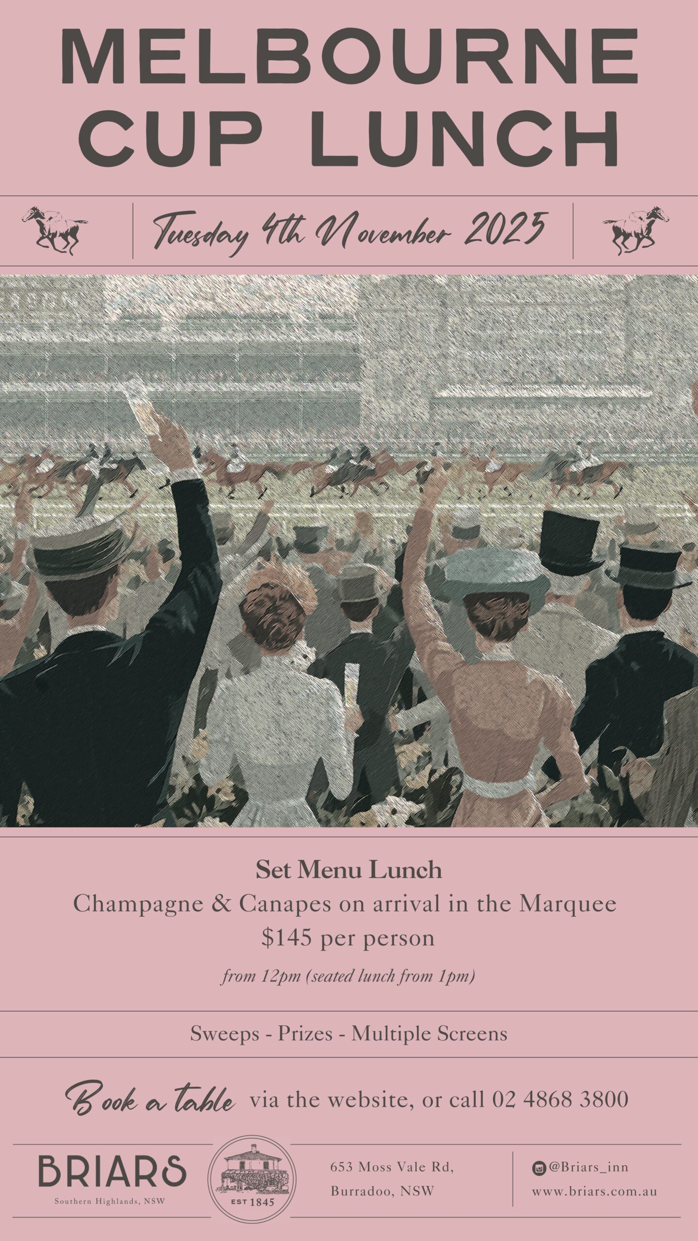 Sweeps, prizes for best dressed & the big race live & loud at 3pm, Briars is the perfect venue to enjoy the highlight of Spring Racing Carnival.
